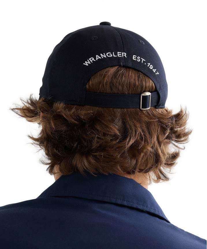 W regulowanej, w 100% bawełnianej granatowej czapce z daszkiem i logo będziesz czuć się świeżo i stylowo. Ten model ma zaokrąglony daszek i regulowane zapięcie z tyłu. Wnieś do swojej stylizacji klasycznego ducha marki Wrangler dzięki naszej granatowej czapce z daszkiem i logo. Ten model z zaokrąglonym daszkiem doskonale osłania głowę przed słońcem, a dzięki zapięciu na metalową klamrę możesz odpowiednio go dopasować. Artykuł uszyty w 100% z trwałego i wytrzymałego diagonalu bawełnianego. Klasyczna konstrukcja z sześcioma panelami i otworami wentylacyjnymi. Klasyczne haftowane logo Wrangler z przodu.