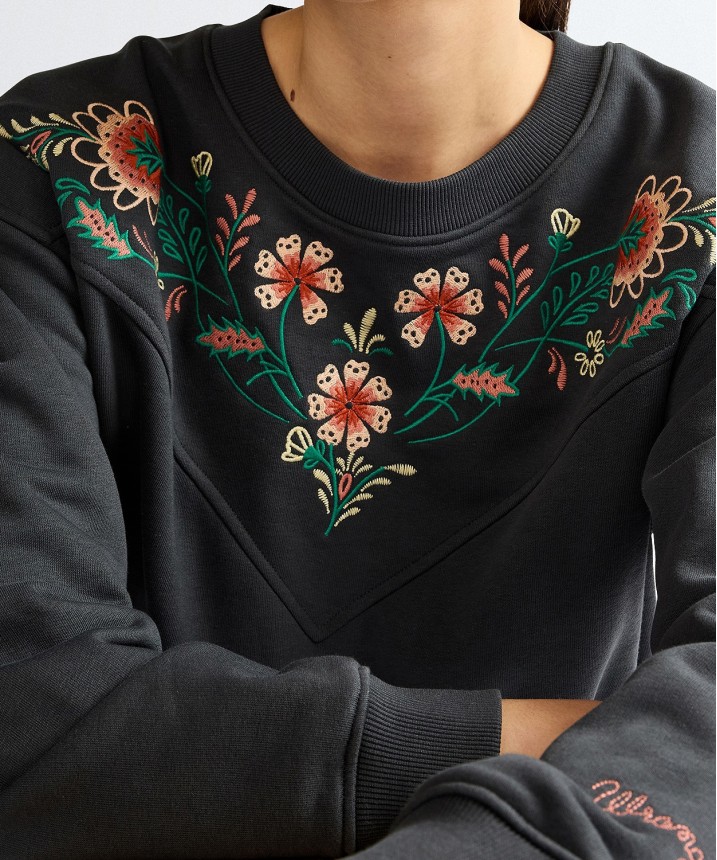 Ta miękka, wygodna bluza z okrągłym dekoltem jest ozdobiona kolorowym kwiatowym haftem na przednim i tylnym karczku. Bluza z okrągłym dekoltem i kolorowym kwiatowym haftem na przednim i tylnym karczku to idealny wybór na wolne dni, gdy oczekujesz od swoich stylizacji czegoś więcej. Materiał french terry jest miękki i wygodny, dlatego możesz z powodzeniem nosić tę bluzę na wielu innych warstwach ubrań. Krój Relaxed o skróconym fasonie cropped zapewnia bardziej swobodny wygląd. Ten model ma szeroki ściągacz u dołu, ściągacz przy mankietach i dekolcie oraz haftowane logo Wrangler na lewym rękawie. Materiał wykorzystany w tym artykule jest produkowany w co najmniej 80% z bawełny uprawianej w wybranych regionach Afryki, które statystycznie zużywają mniej nawozów i pestycydów niż konwencjonalne uprawy bawełny poza Afryką. Dane oparte na publikacji ICAC World Cotton Data Book. Materiał: 80% bawełna, 20% poliester.