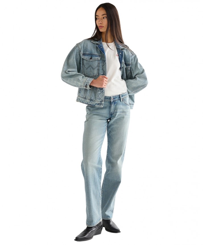 Kurtka jeansowa Cowgirl to niezawodny wybór na każdą porę roku. Została uszyta z lekkiej sztywnej bawełny i doskonale dopełni Twoje warstwowe stylizacje. W tej niezawodnej jeansowej kurtce można ruszać na rodeo. Kurtka Cowgirl łączy charakterystyczne westernowe detale oraz sztywną i lekką bawełnę, by towarzyszyć Ci o każdej porze roku. Włóż ją na ulubioną sukienkę Western lub jeansy Wrangler, by stworzyć jeansowy total look. Krój Relaxed zapewnia bardziej swobodny, codzienny wygląd. Ten artykuł został uszyty z lekkiego materiału, który zachowuje klasyczny styl marki Wrangler, a przy tym jest idealny na cieplejsze dni. Ten model ma spiczasty kołnierzyk, guziki z przodu i przy mankietach oraz dwie kieszenie na klatce piersiowej zapinane na guziki z przeszyciem w kształcie litery W. Materiał: 100% bawełna. Grubość materiału: 10.6 Oz.