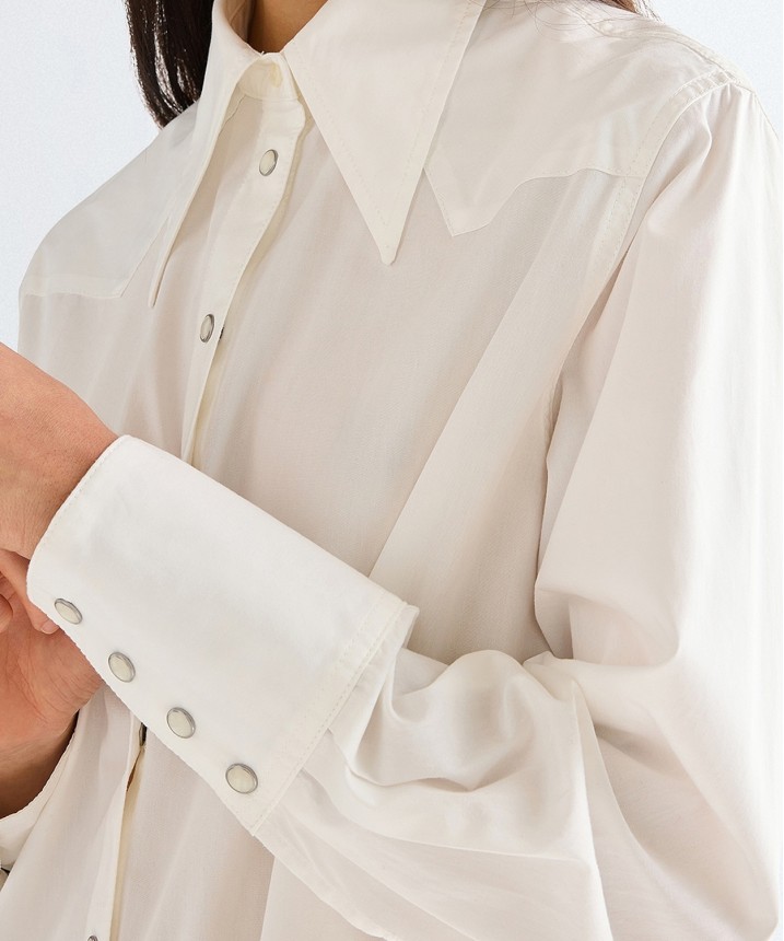 na zatrzaski i duży spiczasty kołnierzyk nabiera wyraźnie westernowego