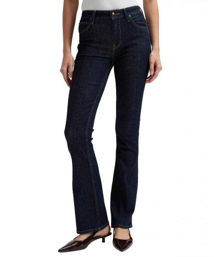 Wąskie spodnie Lee typu bootcut wzorowane na fasonie Breese z wysokim stanem. Atrakcyjne, dopasowane spodnie typu bootcut są teraz w modzie dzięki wysokiemu stanowi. Skład: 84% bawełna, 14% poliester, 2% elastan. Grubość: 10.5 OZ.