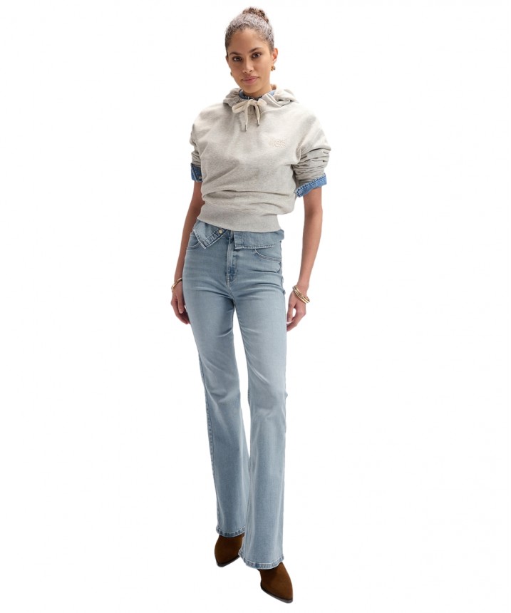 Kultowe obcisłe dzwony sprawią, że wyróżnisz się z tłumu. Pięknie podkreślający sylwetkę wysoki stan z nogawkami dopasowanymi w udach i kolanach, które rozszerzają się przy kostce do dzwonów. To klasyka vintage w nowoczesnej odsłonie. Model na bazie bawełny z recyklingu podkreśla niesamowite właściwości naszego autorskiego, mocno rozciągliwego denimu ForeverFit, który dopasowuje się do sylwetki, zachowując swój pierwotny kształt. Wykończenie w jasnoniebieskim odcieniu Rodeo Ride z wyblakłymi obszarami na całej długości tworzy klimat odzieży z drugiej ręki. Srebrne detale podkreślają świeży i minimalistyczny look. Skład: 88% bawełna, 7% elastomultiester, 5% elastan. Grubość materiału: 12 Oz.