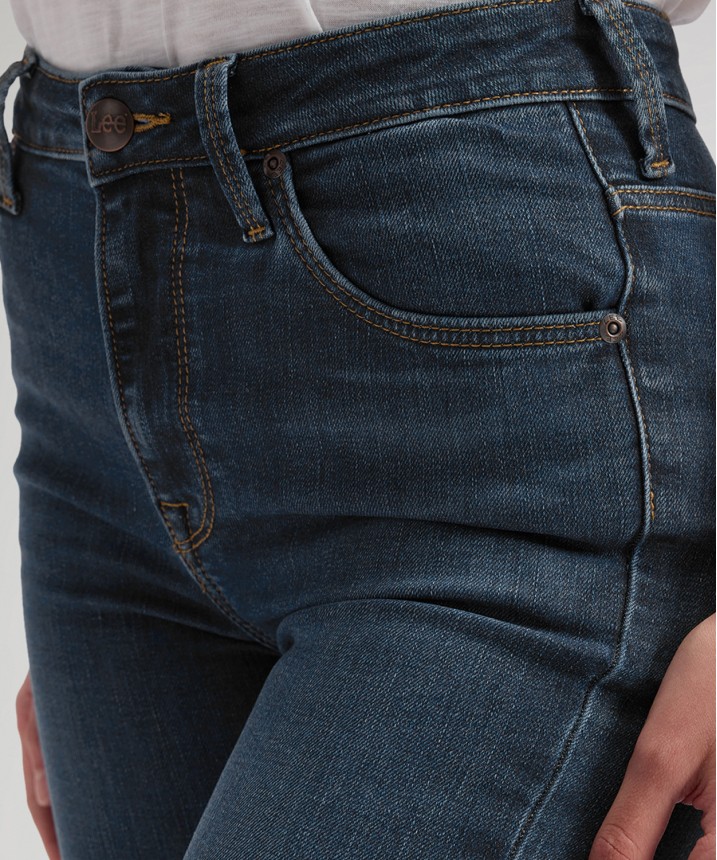 Wąskie spodnie Lee typu bootcut wzorowane na fasonie Breese z wysokim stanem. Atrakcyjne, dopasowane spodnie typu bootcut są teraz w modzie dzięki wysokiemu stanowi. Skład: 85% bawełna, 13% poliester, 2% elastan. Grubość: 12 OZ.