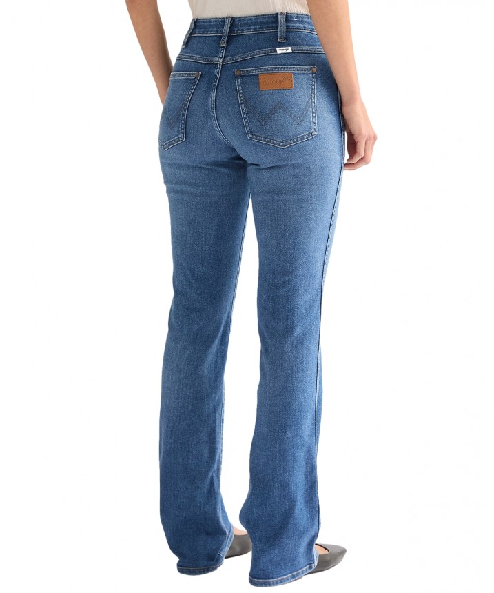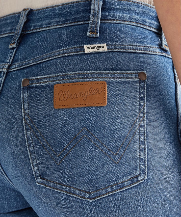 Uwielbiane i ponadczasowe jeansy o kroju bootcut mają średni stan, dopasowane nogawki od uda do kolana oraz klasyczny rozszerzany krój u dołu. Ten artykuł został uszyty z lekkiego materiału, który zachowuje klasyczny styl marki Wrangler, a przy tym jest idealny na cieplejsze dni. Skład: 81% bawełna, 18% poliester, 1% elastan. Grubość materiału: 11.5 Oz.