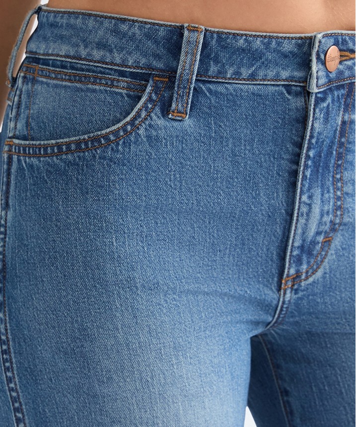 swobodnym kroju od ud do kolan, które mocno rozszerzają się ku dołowi. Skład materiału: 98% bawełna, 2% elastan. Dodatkowe informacje: 3/1 RIGHTHAND TWILL Grubość materiału: 11.33 OZ
