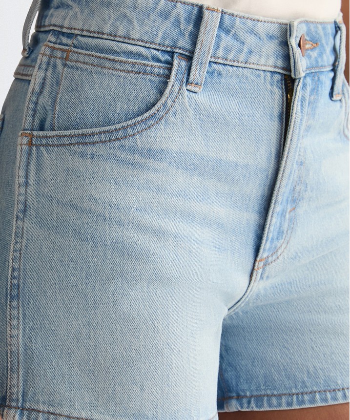Poczuj ducha otwartej przestrzeni w jeansowych szortach Cowboy Short 3 Inch. Te szorty o luźnym kroju są dostępne w wyblakłym jasnoniebieskim odcieniu, idealnym na cieplejsze pory roku. Wysoki stan zapewnia wygodne i podkreślające figurę dopasowanie, a postrzępiony dół dodaje odrobinę surowego uroku. Skład: 99% bawełna, 1% elastan. Grubość materiału: 14 Oz.