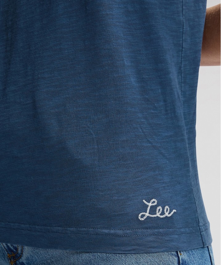 Logo Lee wyszyte łańcuszkowym ściegiem na dole koszulki.