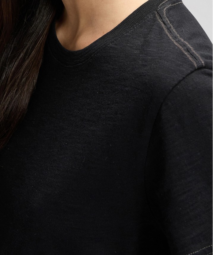 Standardowy krój, klasyczny okrągły dekolt i minimalistyczne wykończenie