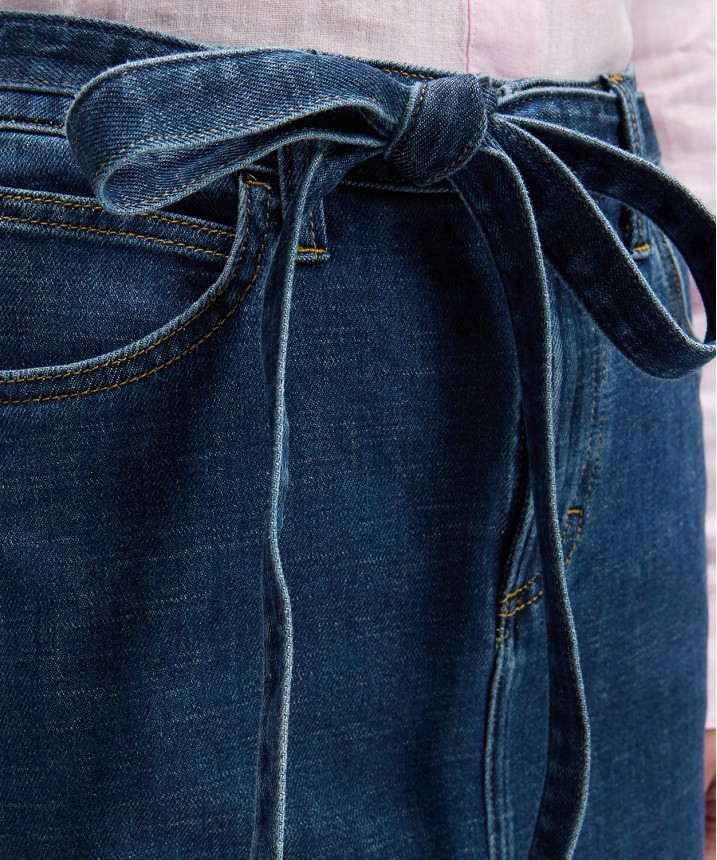 Komfortowy, standardowy krój z podkreślającym sylwetkę wysokim stanem