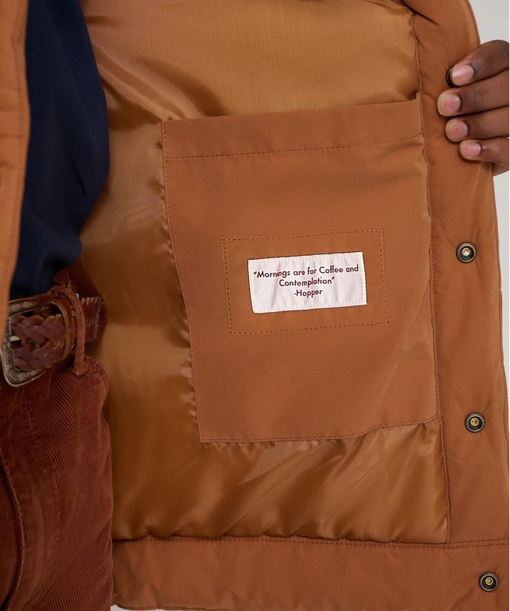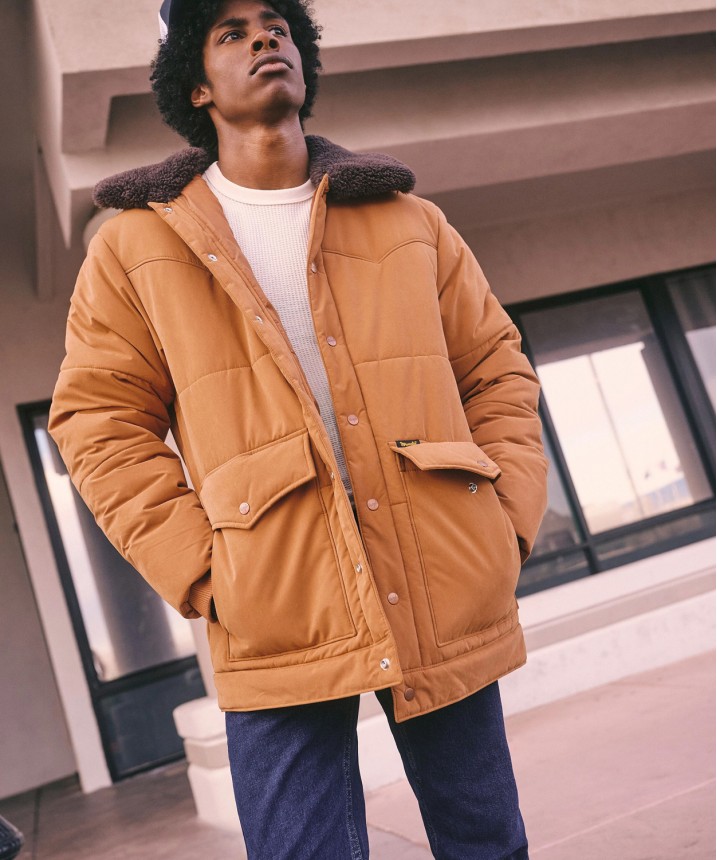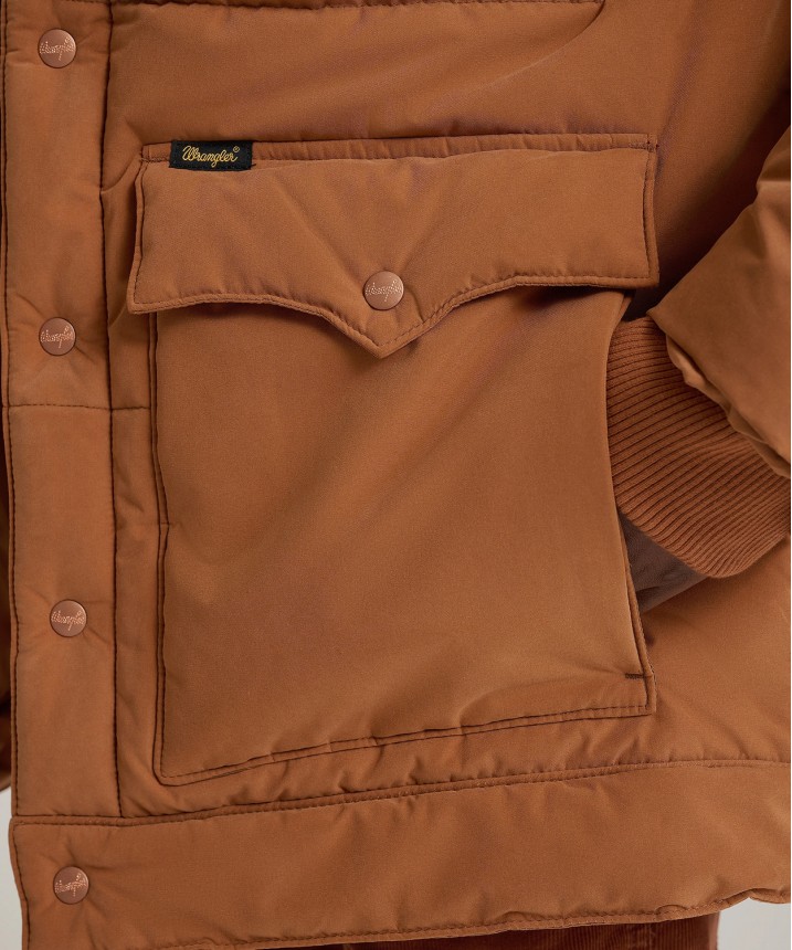 dłuższa kurtka puffer z kultowymi westernowymi detalami i wszystkim, co