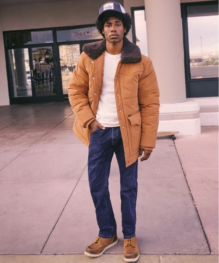 ciepły płaszcz w stylu retro Hopper Wrangler® x Stranger Things. To