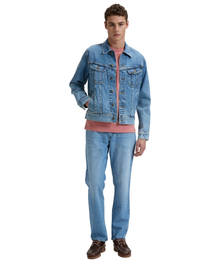 Słynna kurtka Rider nadal wyznacza standardy. Przy jej projektowaniu wykorzystano tradycyjne detale w postaci dwóch kieszeni na piersi, zygzakowatych szwów na plisach i skośnego karczku. To prawdziwa ikona stylu. Jeans jest wykonany z mieszanki włókien obejmujących włókna z recyklingu z dodatkiem streczu, dzięki czemu zapewnia autentyczny wygląd i wygodę. Materiał: 99% bawełna, 1% elastan. Grubość materiału: 12.5 Oz.
