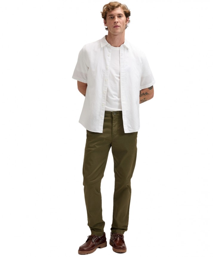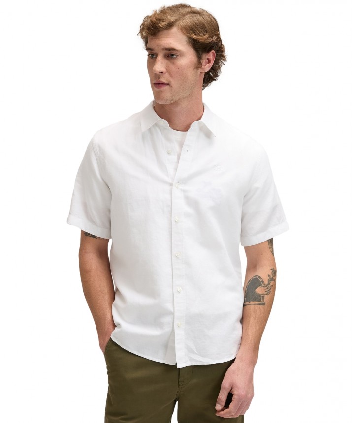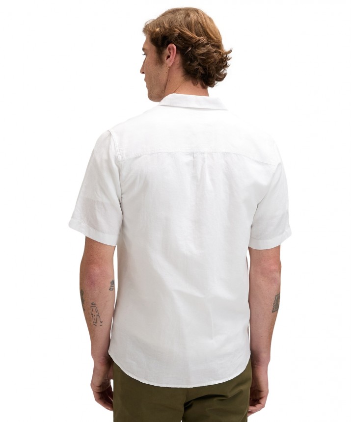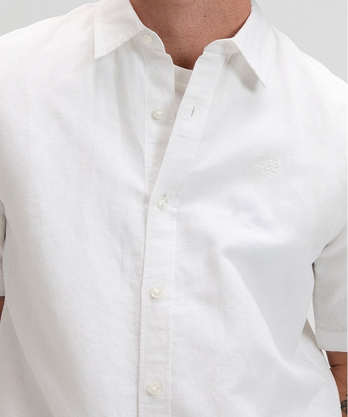 Koszula Lee z krótkim rękawem to prawdziwy letni klasyk. Jest prosta i minimalistyczna - nie ma kieszeni, tylko logo wyszyte tonalną nicią na klatce piersiowej. Materiał zapewnia to, co najlepsze z obu światów, łącząc przyjemną w dotyku bawełnę z przewiewnością lnu. Wykończenie w odcieniu Bright White - czystym, świeżym i nieskończenie uniwersalnym. Skład: 55% len, 45% bawełna.