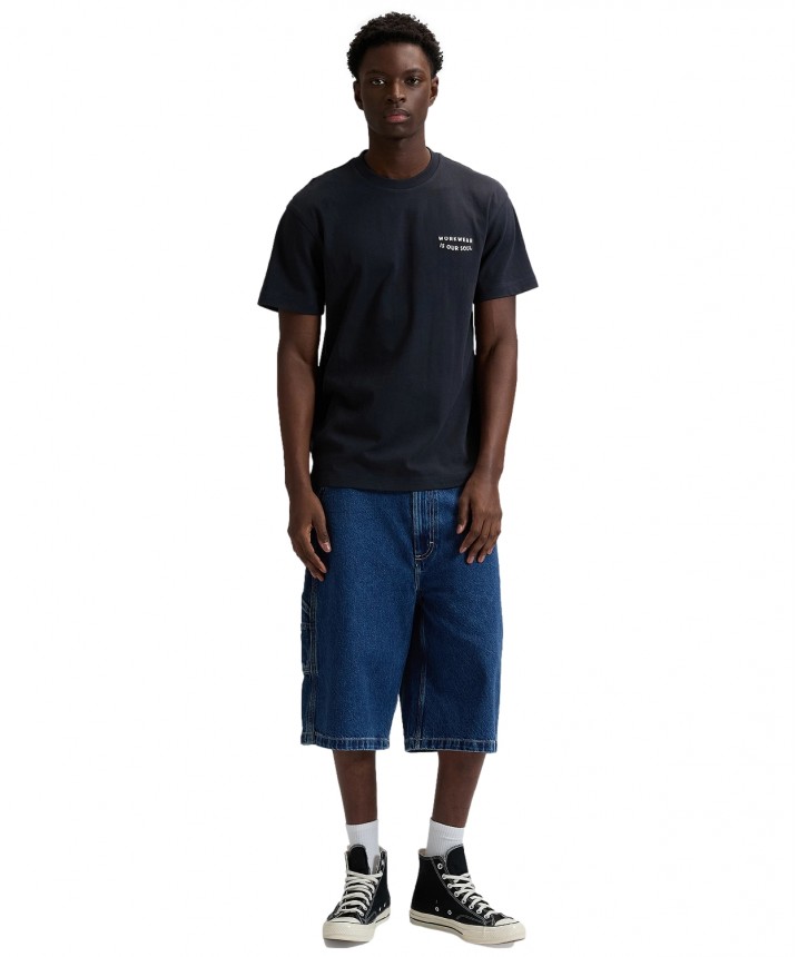 Klasyczna koszulka o kroju Relaxed to strzał w dziesiątkę. Krótkie rękawy, okrągły dekolt i nasze tkane logo z naszywką Workwear czynią z niej podstawowy element garderoby. Skład: 100% bawełna.