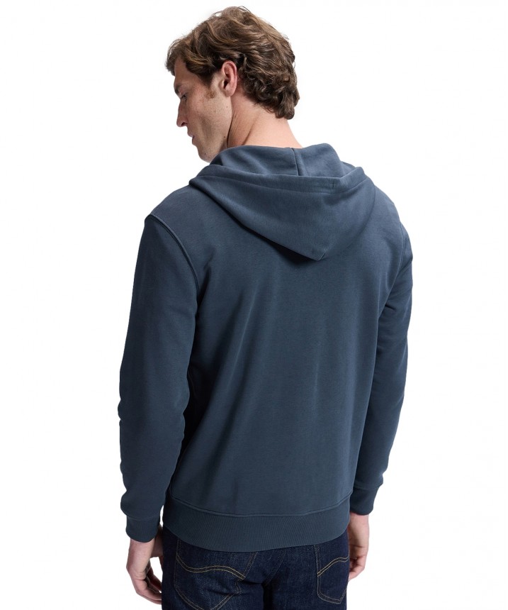 Kluczem do udanych warstwowych stylizacji jest prosta bluza z kapturem zapinana na zamek. Ten model ma standardowy krój zapewniający komfort przez cały dzień i jest uszyty z miękkiego szczotkowanego polaru. Całości dopełniają kaptur ściągany sznurkiem i metalowy zamek z przodu na całej długości. Bluzę możesz nosić na T-shirt, aby uzyskać perfekcyjny i wyluzowany look. Skład: 80% bawełna, 20% poliester.