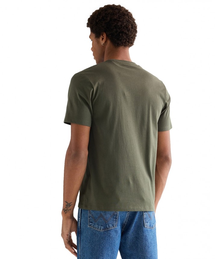 Stwórz modną i jednocześnie swobodną stylizację dzięki koszulce Sign Off w kolorze zielonymi z kontrastowym logo Wrangler. Możesz ją łączyć z ulubionymi jeansami w każdy dzień tygodnia. Komfortowy, standardowy krój. Klasyczny, okrągły dekolt. Materiał: 100% bawełna.