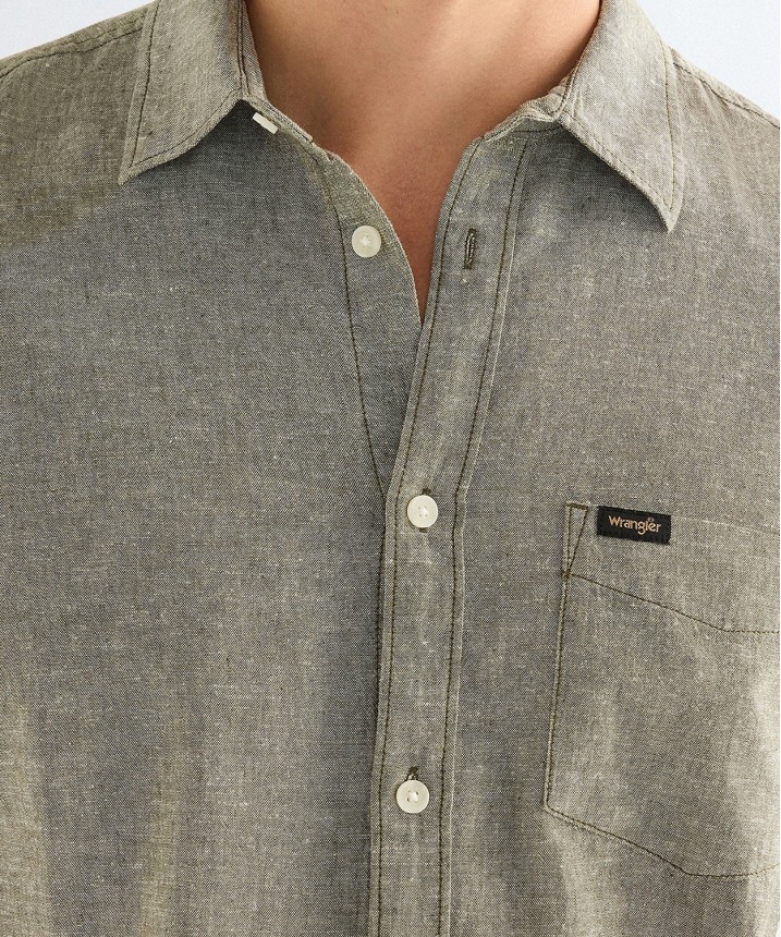 przypiąć przy pomocy guzików, aby wystylizować tę jednolitą zieloną koszulę po swojemu. Regularny krój zapewnia komfort noszenia. Artykuł