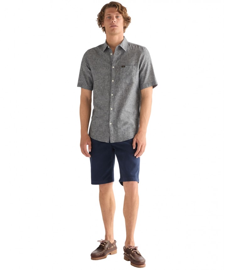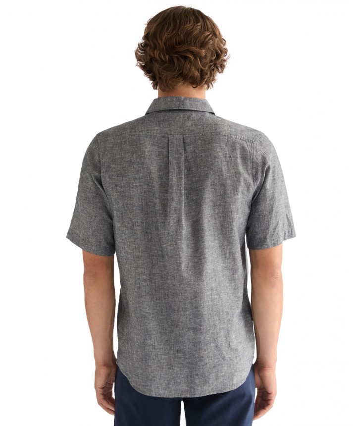 Niebieska koszula z jedną kieszenią, krótkim rękawem i uaktualnionym logo to niezbędny element garderoby. Koszula z jedną kieszenią i krótkim rękawem to idealny wybór, gdy zależy Ci na stylu i komforcie od świtu do zmierzchu. Model na ten sezon został ozdobiony uaktualnionym logo. Regularny krój zapewnia komfort noszenia. Artykuł uszyty z miękkiej, oddychającej mieszanki bawełny i lnu o splocie płóciennym, która zapewnia świeżość w ciepłe dni. Całości dopełnia jedna kieszeń na piersi, pełne zapięcie na guziki z przodu i zaokrąglony dół. Skład: 54% len, 46% bawełna.