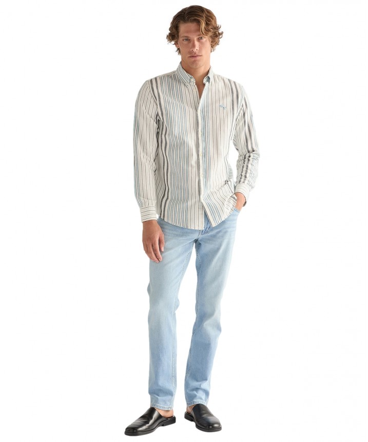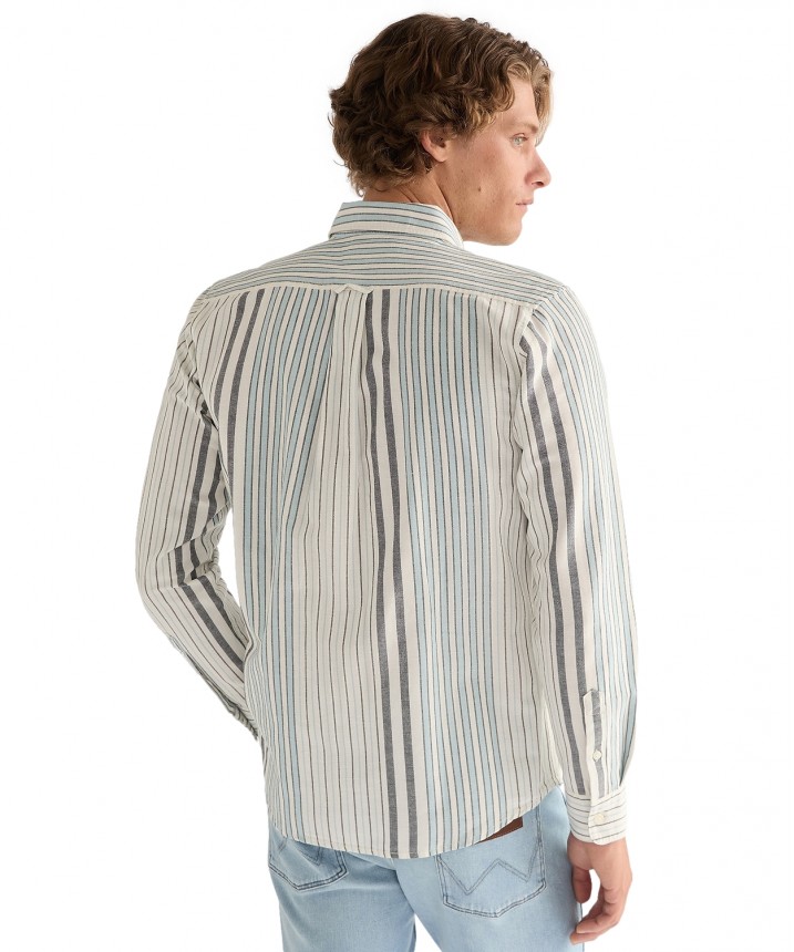 Elegancka i ponadczasowa koszula Oxford z długim rękawem i wzorem w paski została uszyta z miękkiej i przewiewnej bawełny, która zapewnia niezawodny komfort. Koszula Oxford z długim rękawem i wzorem w paski to stylowy dodatek do Twojej garderoby na dni robocze i weekendy. Bawełniany materiał jest miękki i komfortowy, a haftowany detal na klatce piersiowej dodaje całości charakterystycznego stylu Wrangler. Regularny krój - nie za ciasny i nie za luźny, by zapewniać maksymalny komfort. Ten model ma kołnierzyk zapinany na guziki, mankiety z guzikami do regulacji i zaokrąglony dół. Materiał wykorzystany w tym artykule jest produkowany w 100% z bawełny uprawianej w wybranych regionach Afryki, które statystycznie zużywają mniej nawozów i pestycydów niż konwencjonalne uprawy bawełny poza Afryką. Dane oparte na publikacji ICAC World Cotton Data Book.