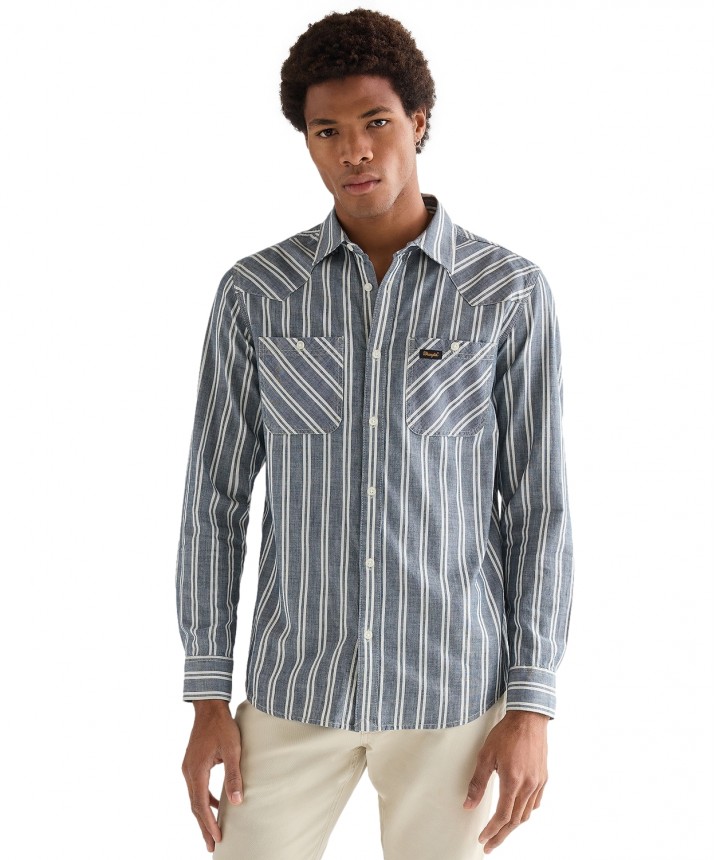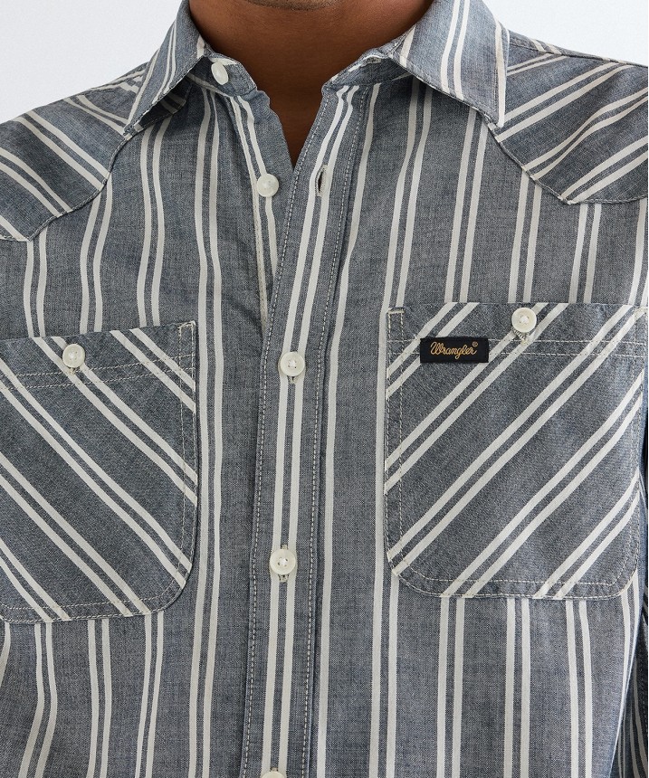 Koszula Wrangler CHAMBRAY SHIRT 112378120 Dark Stripe