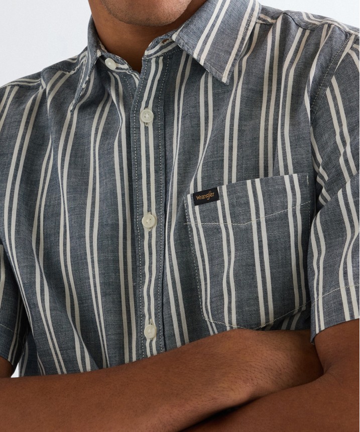 Koszula Wrangler SS CHAMBRAY SHIRT 112378121 Dark Stripe