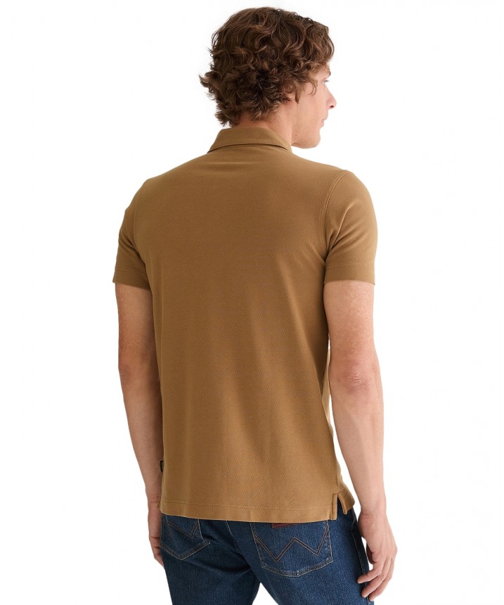 Odkryj ponadczasowy urok zielonej koszulki polo o regularnym kroju, idealnej na każdą porę roku. Koszulka polo z krótkimi rękawami i klasycznym krojem ma zapięcie na trzy guziki i została ozdobiona małym haftowanym logo na lewej piersi. Skład: 100% bawełna.