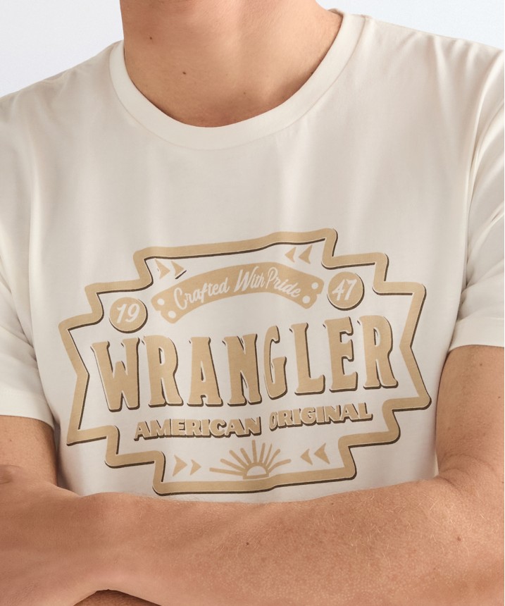 Koszulka Americana to celebracja ponadczasowego stylu, w białym kolorze, który jest uniwersalny na każdą porę roku. Krótki rękaw i klasyczny okrągły dekolt sprawiają, że jest to niezbędny element codziennej garderoby. Kultowy nadruk z logo Wrangler na piersi podkreśla dziedzictwo marki. Materiał: 100% bawełna.