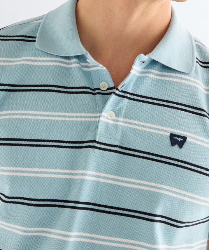 Koszulka Wrangler STRIPE POLO SHIRT 112378536 Forget Me Not