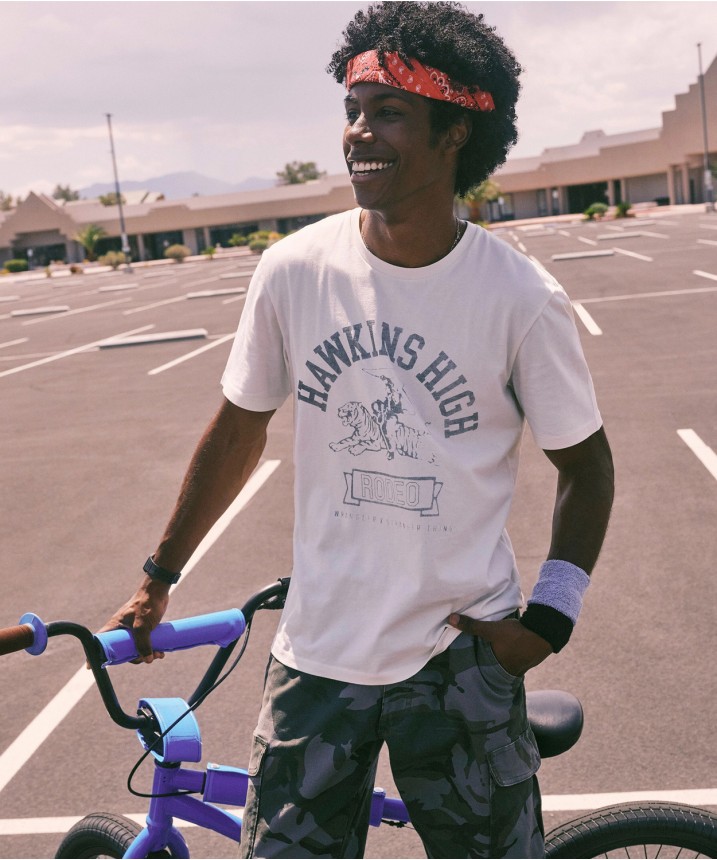 W T-shircie Hawkins High inspirowanym ubiorem bohaterów piątego i
