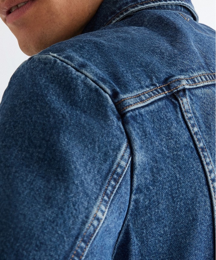 rękawów. Artykuł został uszyty z lekko wyblakłego denimu stonewashed w