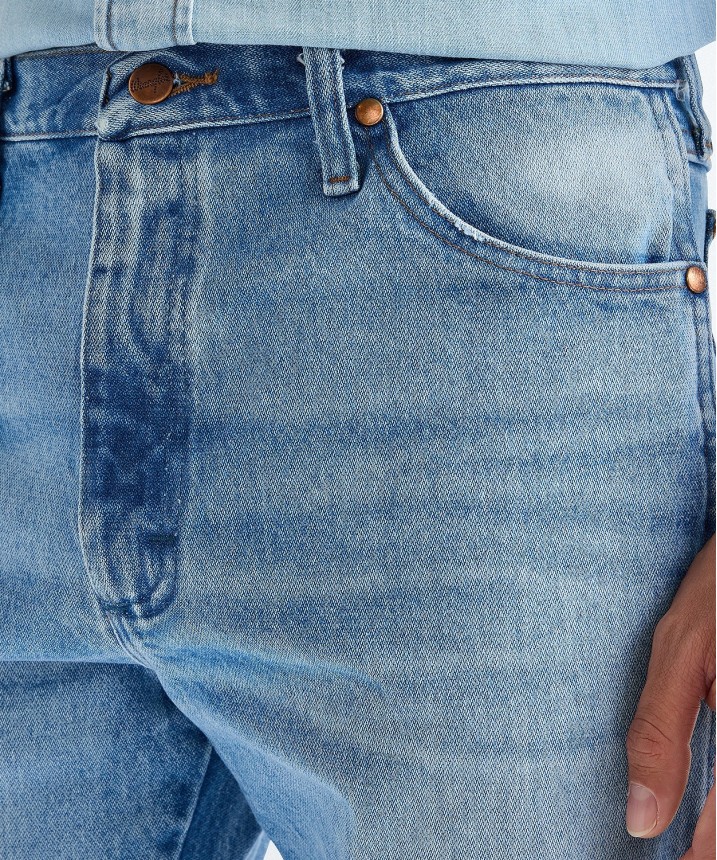 Jeansy Blue Bell 13MWZ Cowboy Cut® zostały uszyte ze sztywnej bawełny 15 oz. Mają odcień indygo i wszystkie kultowe cechy, jakich oczekujesz od oryginalnych kowbojskich jeansów. Ten model powstał z inspiracji naszymi 70-letnimi archiwami i został nazwany na cześć Blue Bell Inc. - firmy z początków XX wieku, która w 1947 roku utworzyła markę Wrangler. Jeansy 13MWZ Cowboy Cut® towarzyszyły kowbojom i jeźdźcom rodeo na Amerykańskim Zachodzie od 1947 roku i dziś odnoszą równie duże sukcesy jak wtedy, gdy zostały zaprojektowane po raz pierwszy przez 'Rodeo Bena' Lichtensteina. Oryginalny krój cowboy: regularna talia, uda i kolana oraz lekko poszerzone otwory nogawek, by zapewnić idealne dopasowanie do butów z wyższą cholewką. Artykuł uszyty z wytrzymałego, sztywnego denimu 15 oz. z efektem znoszenia. Ten model ma rozporek z zamkiem błyskawicznym i zapięciem na guzik, nakładane podwijane zewnętrzne szwy, płaskie nity oraz zaktualizowane logo Wrangler. Skład: 100% bawełna. Grubość: 15 OZ.