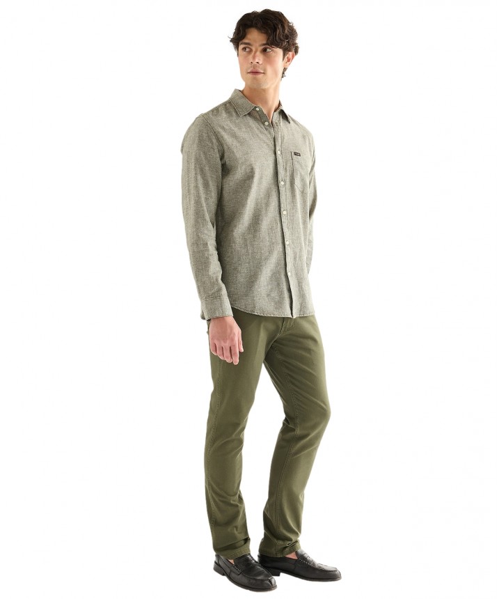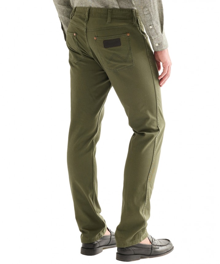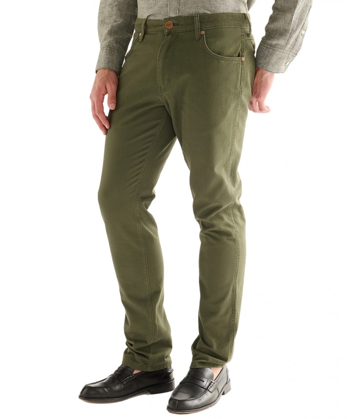 Wygodne oliwkowe spodnie Greensboro w stylu smart casual z pięcioma kieszeniami to dobra alternatywa dla Twoich ulubionych jeansów Wrangler. Idealne do pracy lub na weekendy, nasze oliwkowe spodnie Greensboro to inteligentny-casualowy element garderoby i wygodny wybór w lekkim materiale, idealny na każdą porę roku. Proste nogawki wyglądają dobrze bez względu na to, czy je podwiniesz, czy nie, więc możesz dopasować te spodnie do dowolnej stylizacji. Średni stan tuż poniżej talii, proste nogawki i regularny krój w udach. Ten model ma rozporek z zamkiem błyskawicznym i zapięciem na guzik, siedem szlufek na pasek, charakterystyczne przeszycie w kształcie litery W oraz uaktualnioną skórzaną naszywkę na tylnej kieszeni. Artykuł uszyty z diagonalu bawełnianego, który jest miękki, lekki i zapewnia komfort przez cały dzień. Skład: 100% bawełna. Grubość materiału: 7.67 Oz.