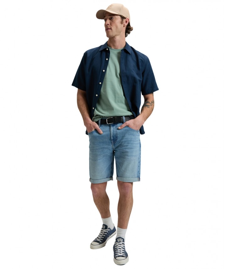 Dotrzymaj kroku letnim planom w tych szortach z pięcioma kieszeniami. Model ma standardowy krój i kończy się w połowie uda wąskim wywinięciem, które można opuścić, aby zwiększyć długość. Skład: 99% bawełna, 1% elastan. Grubość materiału: 13.15 Oz.