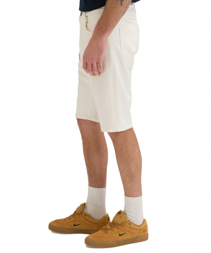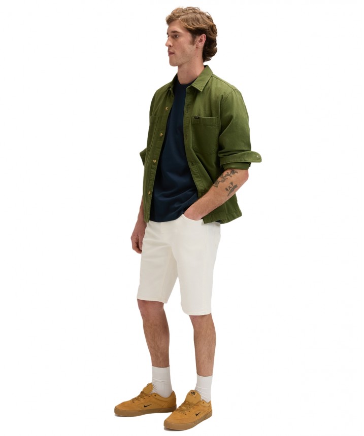 Dotrzymaj kroku letnim planom w tych szortach z pięcioma kieszeniami. Model ma standardowy krój i kończy się w połowie uda wąskim wywinięciem, które można opuścić, aby zwiększyć długość. Model jest uszyty z mocnego i trwałego denimu o gramaturze 383 g/m2 na bazie mieszanki bawełny i lyocellu, a lekko rozciągliwy materiał zapewnia wygodę noszenia na co dzień. Wykończenie w odcieniu czystej bieli idealnie wpisuje się w atmosferę skąpanych w słońcu dni. Skład: 67% bawełna, 32% lyocell, 1% elastan. Grubość materiału: 13.5 Oz.